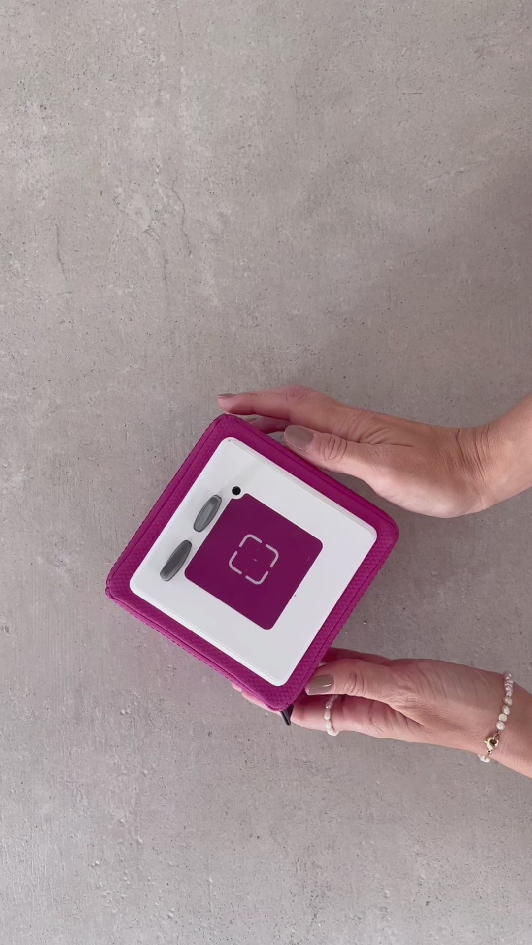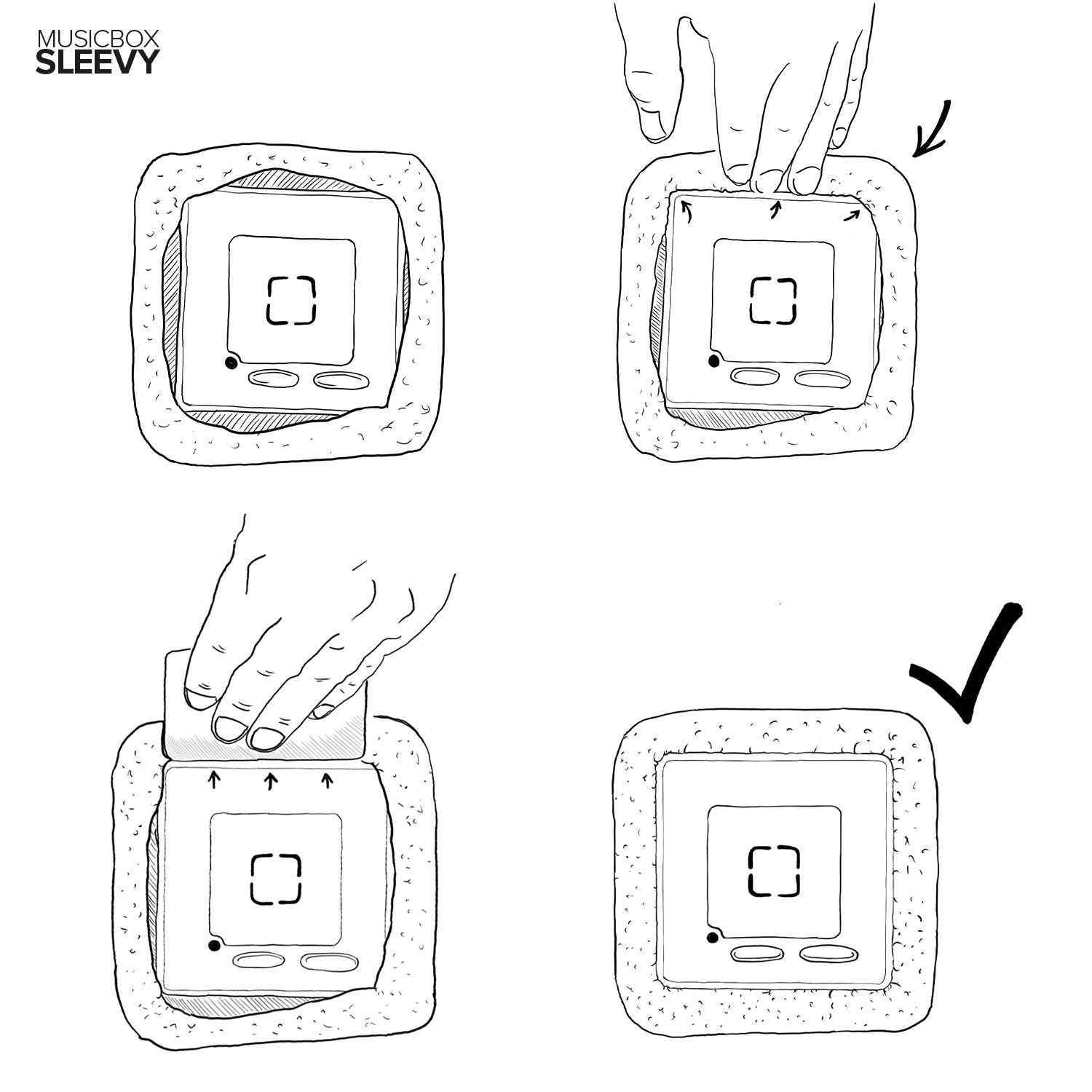 1. Unser SLEEVY wird von unten nach oben über die Musikbox gezogen. (mit der großen Öffnung voraus) Info: Die Teddy-Hülle ist ziemlich eng vernäht - und das ist Absicht! :)