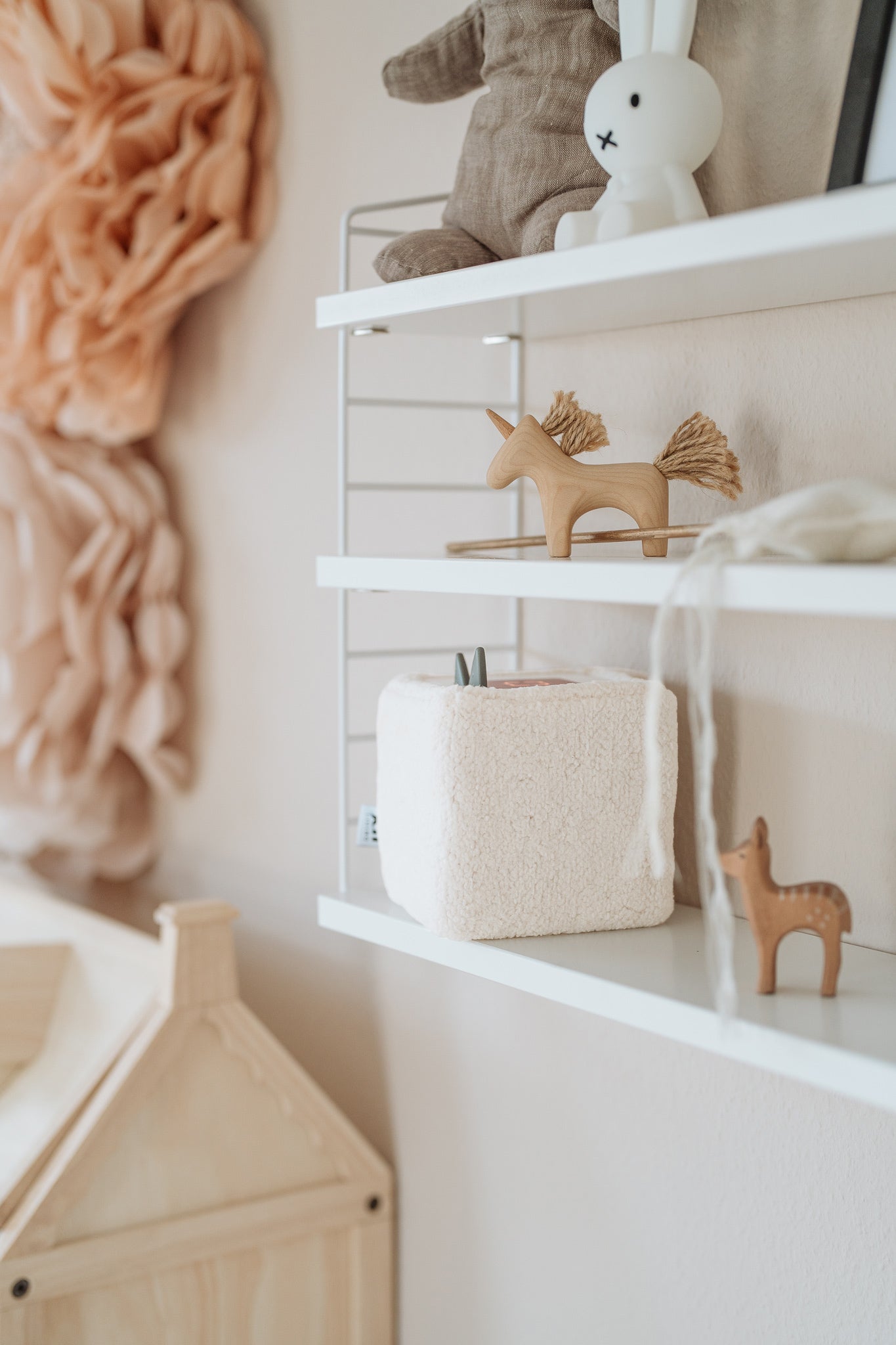 2. Die oberen Ränder einfach an den Ecken unter die weiße Platte der Musikbox drücken.