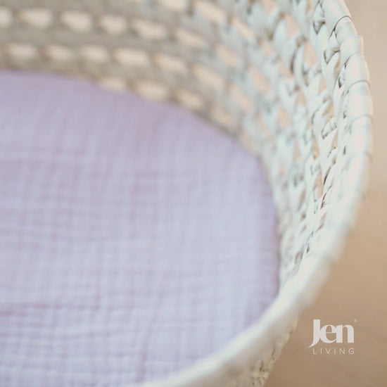 Genäht wurde die Matratze aus einem hochwertigen Baumwoll-Musselin in puderrosa. Füllung aus ökologischer Polyesterfaser-Füllwatte.
